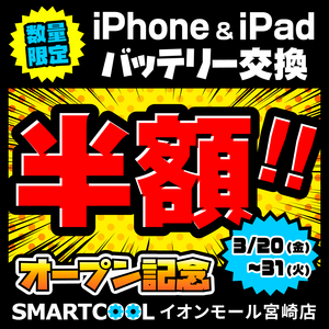 期間はオープン日3/20(金)〜3/31(火)まで!このお得な機会にぜひスマートクールイオンモール宮崎店へお越し下さい!!