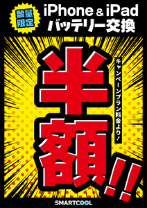 期間限定で3/19~3/22までの間【iPhone,iPadのバッテリー交換がキャンペーン料金より半額】でご案内中!