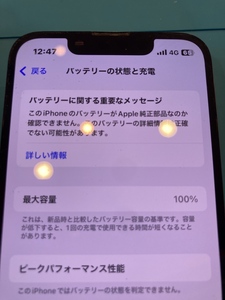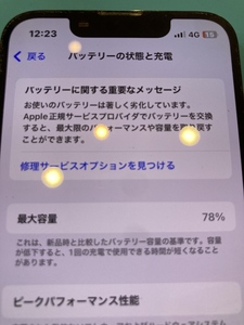 バッテリーの最大容量は、本体から確認が出来ますが、こちらの端末は78%と劣化が進んでおりました。