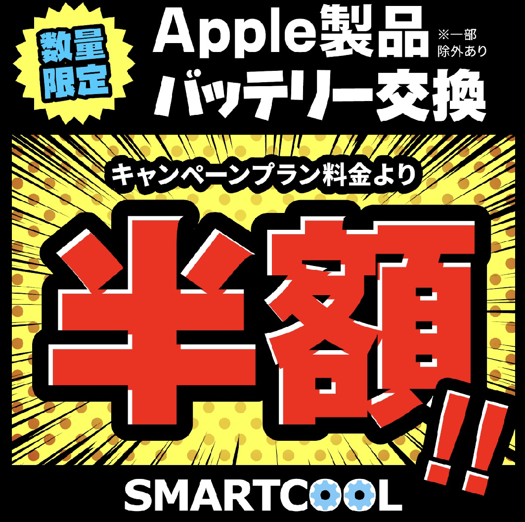 期間限定で12/12~12/21までの間【Apple製品のバッテリー交換キャンペーン料金より半額】でご案内中!